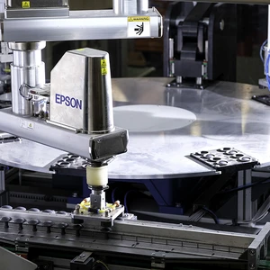 Die Erzeugnisse werden auf vollautomatischen Montagelinien zusammengesetzt. Dank ihrer hohen Produktivität ist die Herstellung von Millionenstückzahlen möglich. Während eines kurzen Arbeitszyklus erfolgt die Ausrichtung und Platzierung der Bauteile in einer Matrize. Anschließend werden mithilfe von Robotern weitere Fertigungsschritte durchgeführt. Dazu gehören beispielsweise: